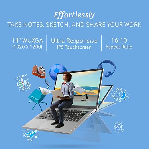 The 14-inch WUXGA (1920×1200) multi-touch display is a standout feature. It’s sharper than a standard Full HD panel, delivering crisp text and vibrant colors. The touchscreen is responsive, making it easy to navigate Windows 11 or interact with apps. The included AES Pen Solution adds another layer of functionality, offering a natural writing and drawing experience that’s perfect for students, artists, or anyone who loves jotting down ideas by hand.